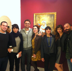 "One of the most significant aspects of contemporary visual art is the necessary conjunction of factors that confer legitimacy: the discussion of inherent questions related to the time, the reflection of the unsettling events impacting upon the artist and the appropriateness of the medium and the frame chosen to exhibit the work or artistic production.For the artist, the witnessing or the observation of his era provokes in his spirit a convulsion, an unsettling feeling that must be translated into a specific medium. This is the battlefield of art, “a drama lived by all who are condemned to invent, create, construct” (Fernand Léger, Functions of Painting). The capacity of the artist is put to the proof and often the result is obliterated by the difficulties related to the material elaboration of the idea.While searching for the best manifestation, it is natural that the artist incorporates into his creative process the evolutions and scientific discoveries of his time. The use of various tools provides additional facilities, as they amplify the productive range; similarly, the association of some media, especially the technologies, diversifies the language and permits multiple results. Thus, as a means of expression, painting is perhaps one of the most difficult options available today and this is the principal support chosen by Saramello for the answer to his conundrum, almost against the flow of history. His ability to draw and paint supports the conception of his work and in parallel, offers to one a land that is being thoroughly explored.In abandoning other media to give preference to a traditional resource, Saramello induces in the public a direct and comfortable understanding from the very first moment. His ingenuity thus reveals: with dreamy aestheticism a childlike first glimpse – suggested by the formal use of characters and intense colours associated with this imagery – a second look reveals an acute perception of human relationship in society, ably masked by the composition of ingenious situations in irreverent images or themes, attributing to man his true dichotomous nature "ESPELHO ÀS AVESSAS" (MIRROR IN REVERSE) – Pocket Show presents the image of humanity as it really is: a synthesis of man-animal, a prisoner of his own stupidity, cruel and entertaining, incoherent and sometimes peculiarly sweet." [by Anne Lopes]